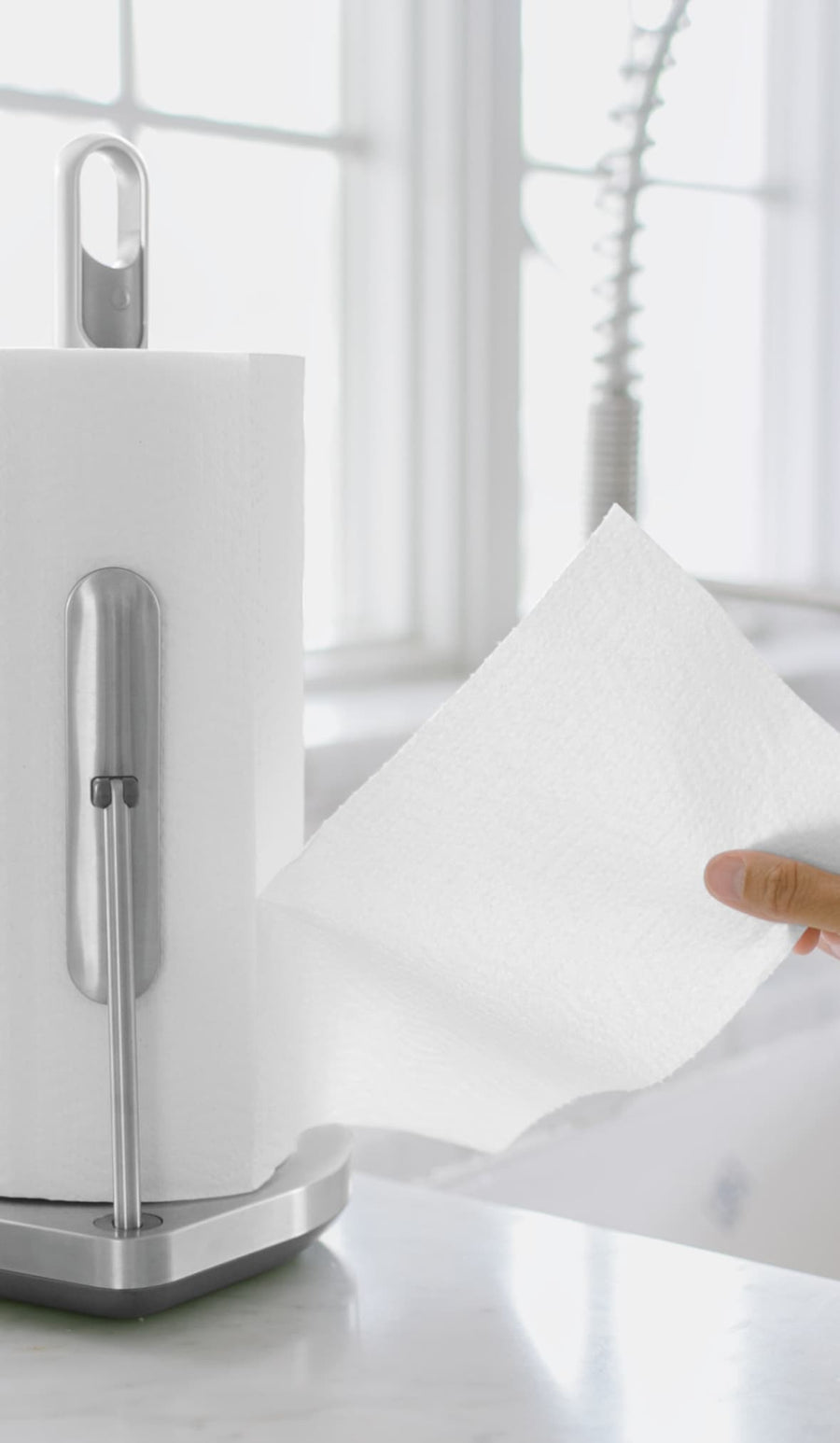 Nos obsesionan los detalles. Nuestros portarrollos de papel aplican la presión justa sobre el rollo para que se pueda rasgar fácilmente con una sola mano.
