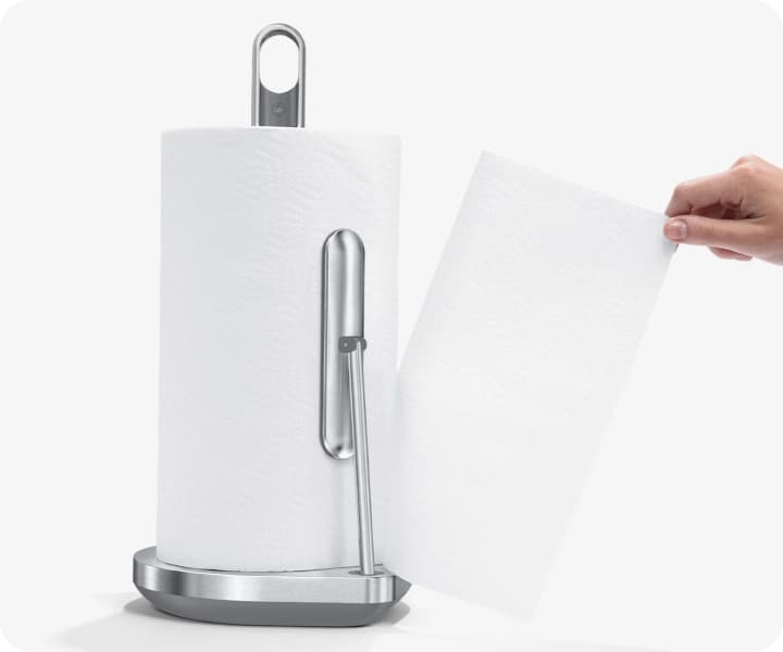 Goteos, derrames, grasa, gérmenes – la suciedad es parte de la vida. ¡Pero no te preocupes! Este portarrollos tiene un pulverizador integrado: aprieta y pasa un papel. Todo lo que necesitas para una limpieza rápida y fácil está al alcance de tu mano.