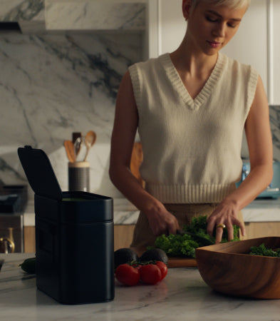 Añada nuestro cubo para basura orgánica a su cubo para obtener una solución inteligente y flexible para clasificar sus residuos.