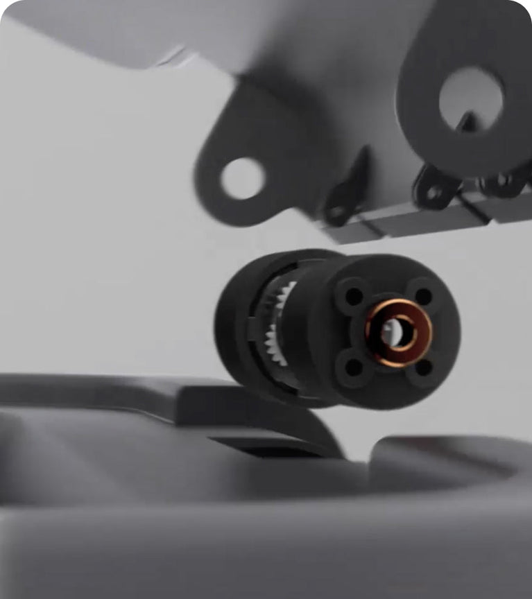 El pequeño pero potente motor encaja perfectamente en la bisagra, por lo que no hay mecanismos voluminosos que bloqueen la amplia abertura. Y con tan solo 52 dBs, es casi imperceptible.