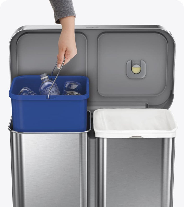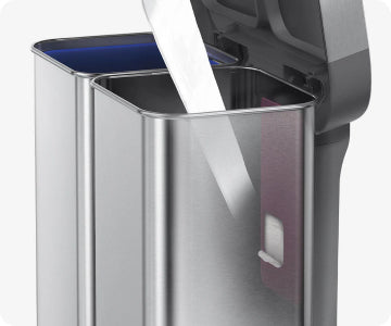 Nuestra opción de doble compartimento hace que clasificar la basura tenga buen aspecto. Cada lado ofrece gran capacidad y el vaciado es fácil gracias al cubo de plástico en el lado de reciclaje y a un almacén de bolsas en el compartimento de basura.