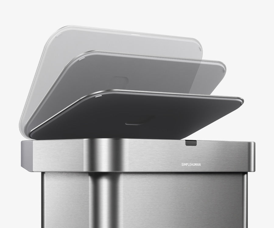 Our liner rim system makes trash faster and neater. Simply lift the lid for easy access, then close it to keep the liner tidy and out of sight.