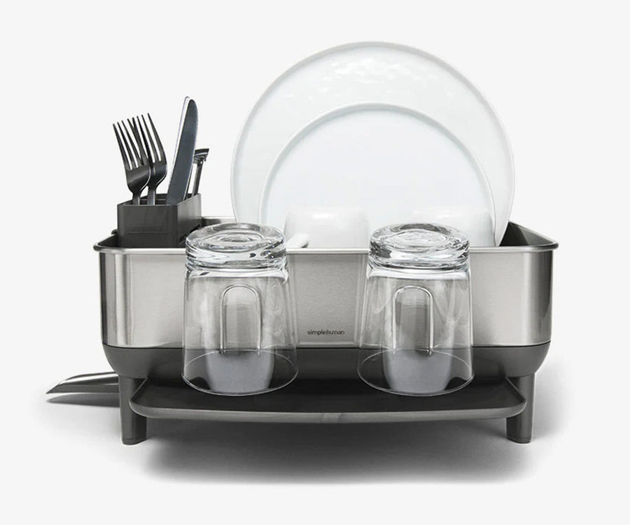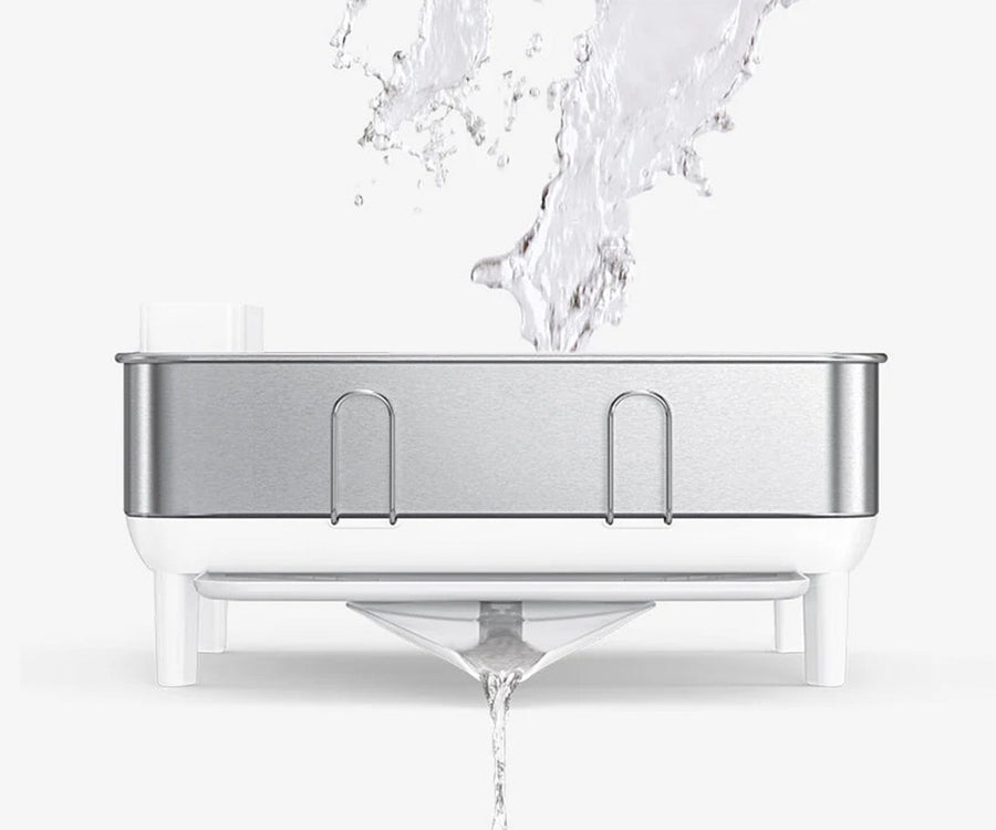 Nuestros escurreplatos drenan el agua de forma rápida y práctica, sin charcos, manchas de agua ni residuos. Incluso contamos con una canaleta giratoria para drenar el agua en el fregadero, independientemente de cómo coloques el escurreplatos.