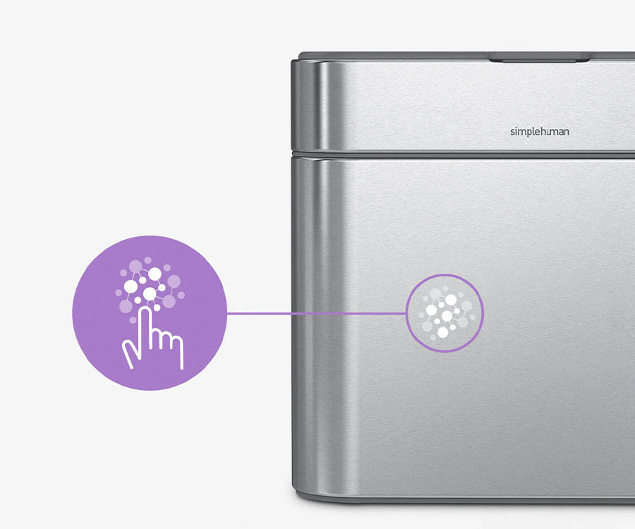Nuestro revestimiento invisible de iones de plata resiste las huellas dactilares y la propagación de gérmenes sin atenuar el brillo y el lustre natural del acero (solo el modelo cepillado).