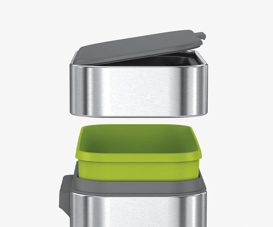 La tapa extraíble y un delicado cubo interior están diseñados para ofrecer una retirada, un vertido y una limpieza eficientes.