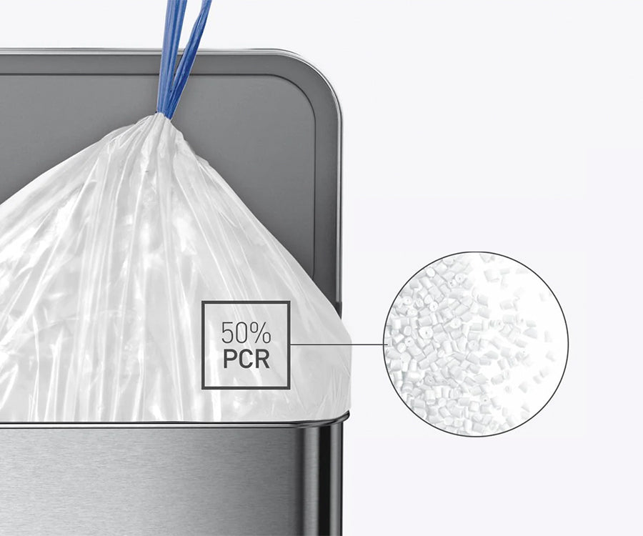 Elaboradas con un 50 % de plástico reciclado postconsumo, nuestras bolsas de basura sostenibles evitan que los materiales lleguen a los vertederos y a los océanos y que el carbono llegue a la atmósfera.