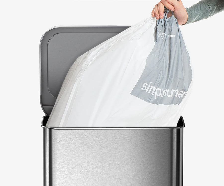 Nuestras bolsas personalizadas están diseñadas para encajar perfectamente en los cubos y no resbalarse ni verse desde fuera cuando se cierra la tapa.