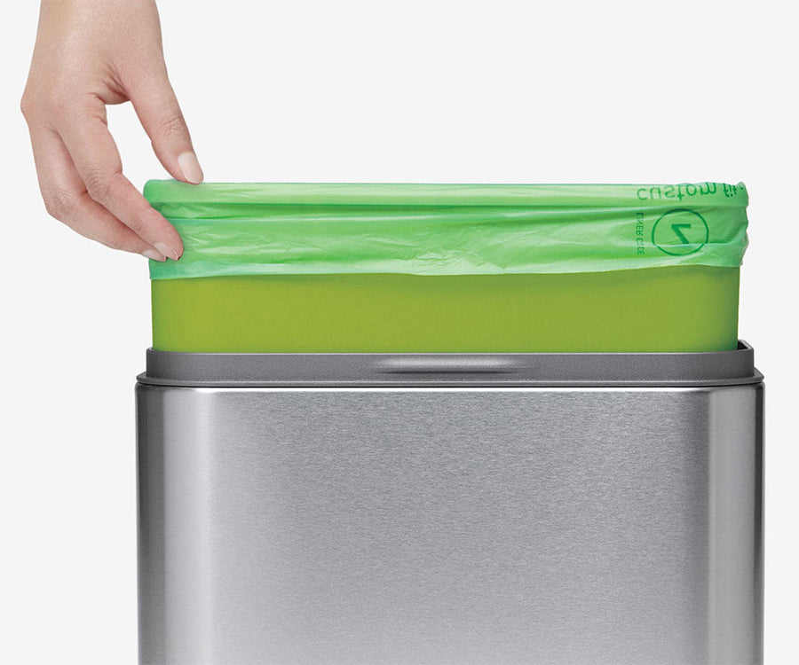 Nuestras bolsas personalizadas compostables de código Z están diseñadas para encajar perfectamente en los cubos para basura orgánica y no resbalarse ni verse desde fuera cuando se cierra la tapa.
