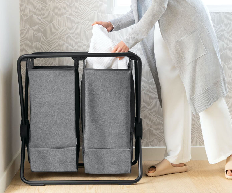 Nuestras cestas de la colada sostenibles están elaboradas de poliéster ligero y resistente 100% reciclado, diseñado para que tú también puedas respirar.