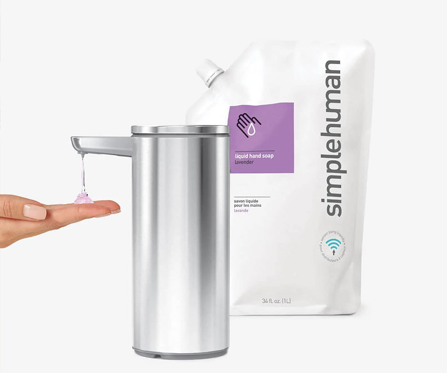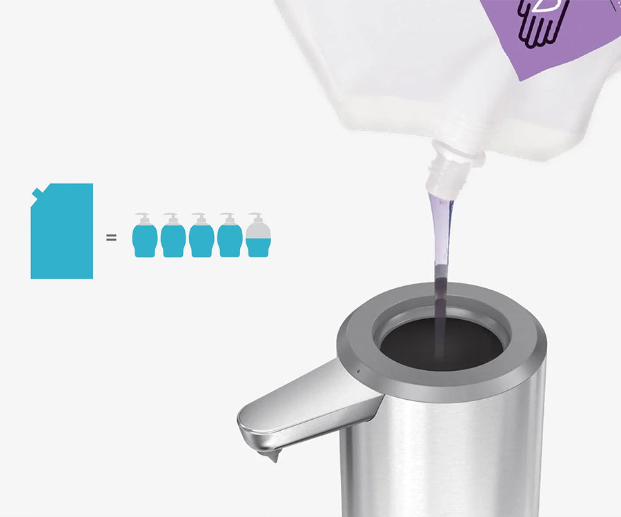 Tirar los dispensadores de plástico desechables una y otra vez es perjudicial para el medioambiente... y para tu cartera. Nuestras bolsas de recarga de jabón con autocierre son una forma inteligente de comprar jabón.