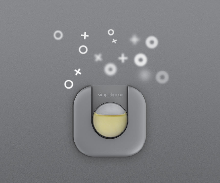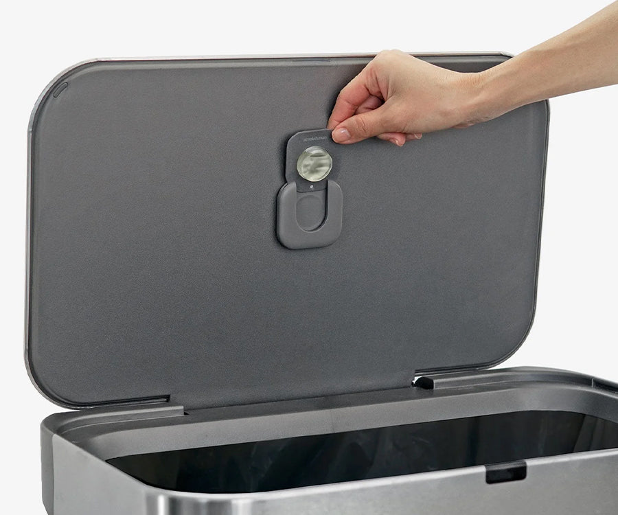 Nuestras cápsulas odorsorb se ponen de forma discreta bajo la tapa del cubo de basura de Simplehuman para eliminar malos olores.
