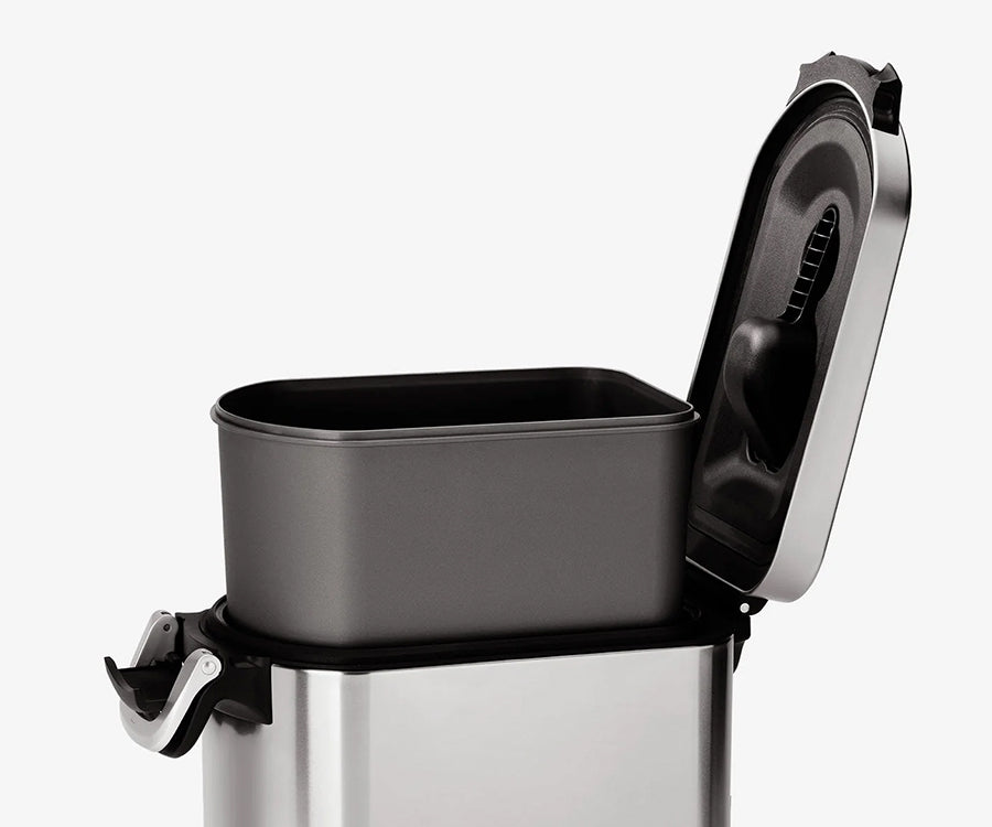 El asa, grande y ergonómica, cierra la tapa con un solo movimiento suave y la mantiene cerrada para prevenir que las mascotas la abran.