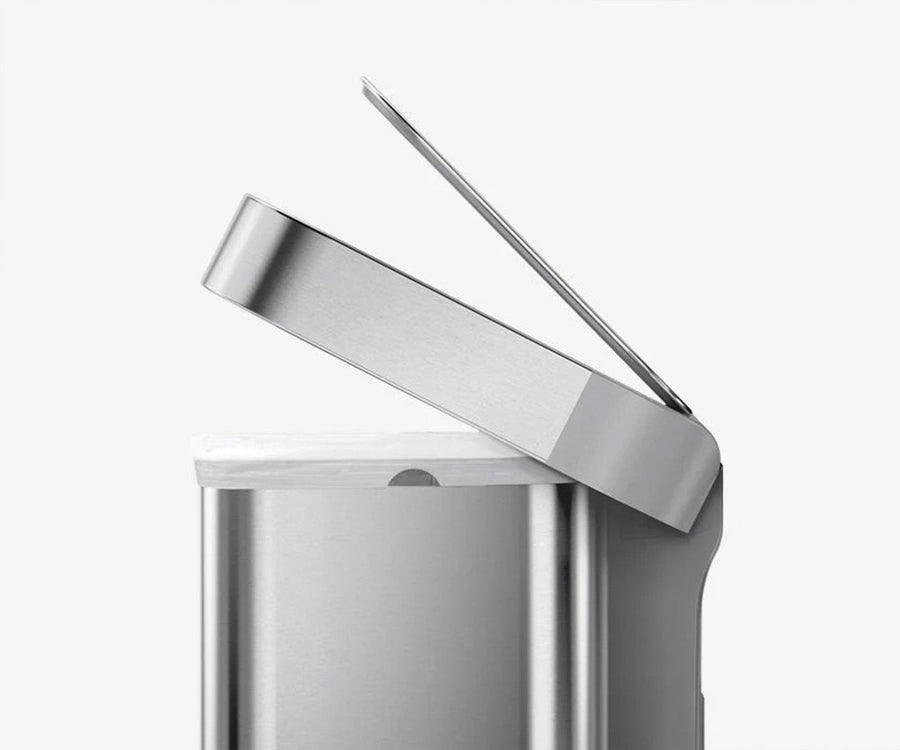 ¡Nuestro exclusivo sistema de borde para bolsa ofrece una forma más limpia y rápida de tirar la basura! El borde exterior se levanta para facilitar el acceso a la bolsa de basura. No es necesario retirar la parte superior del cubo ni pelearte con un cubo interior. Una vez terminada la tarea, el borde se cierra sobre la bolsa de basura y evita que quede a la vista.