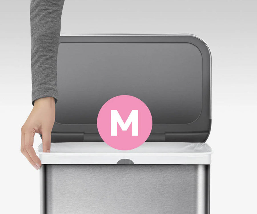 Con nuestro bolsillo para bolsas podrás guardar fácilmente un paquete de 20 bolsas a medida dentro del cubo para que nunca tengas que buscarlas.