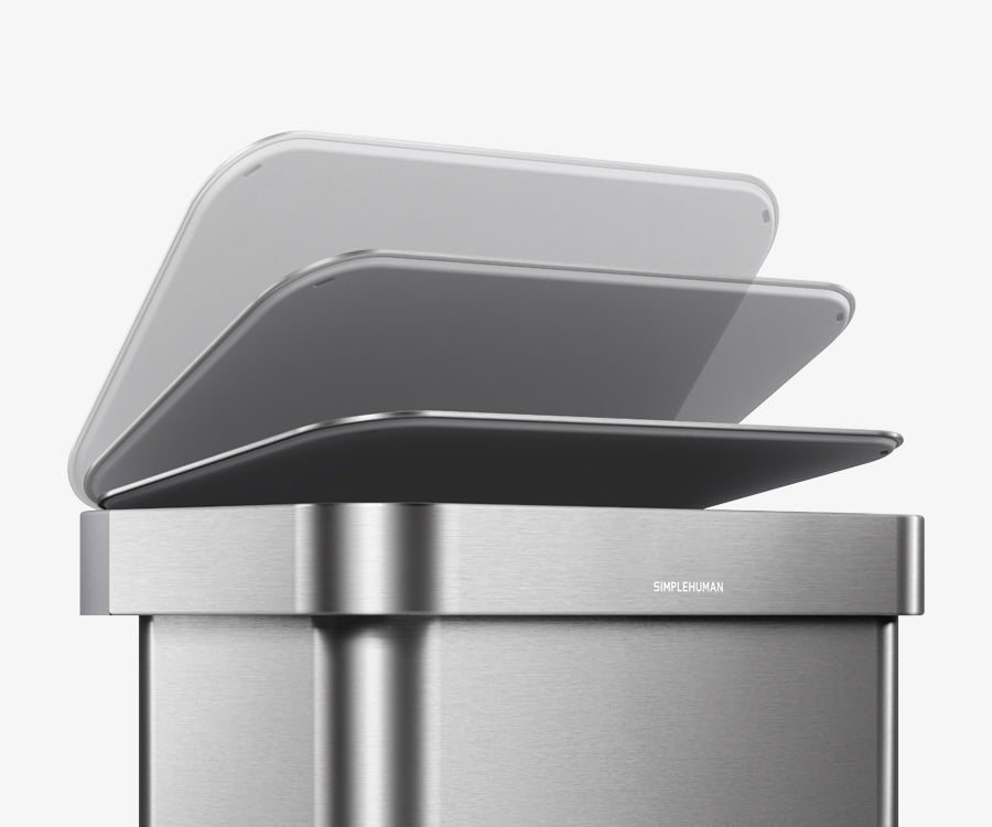 Our liner rim system makes trash faster and neater. Simply lift the lid for easy access, then close it to keep the liner tidy and out of sight.