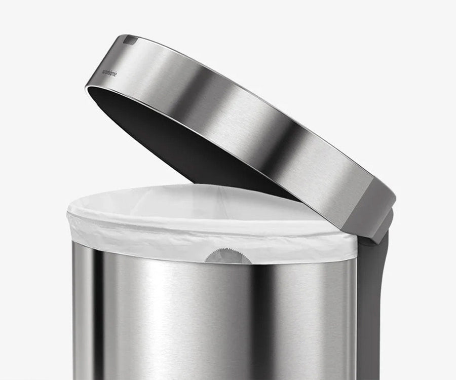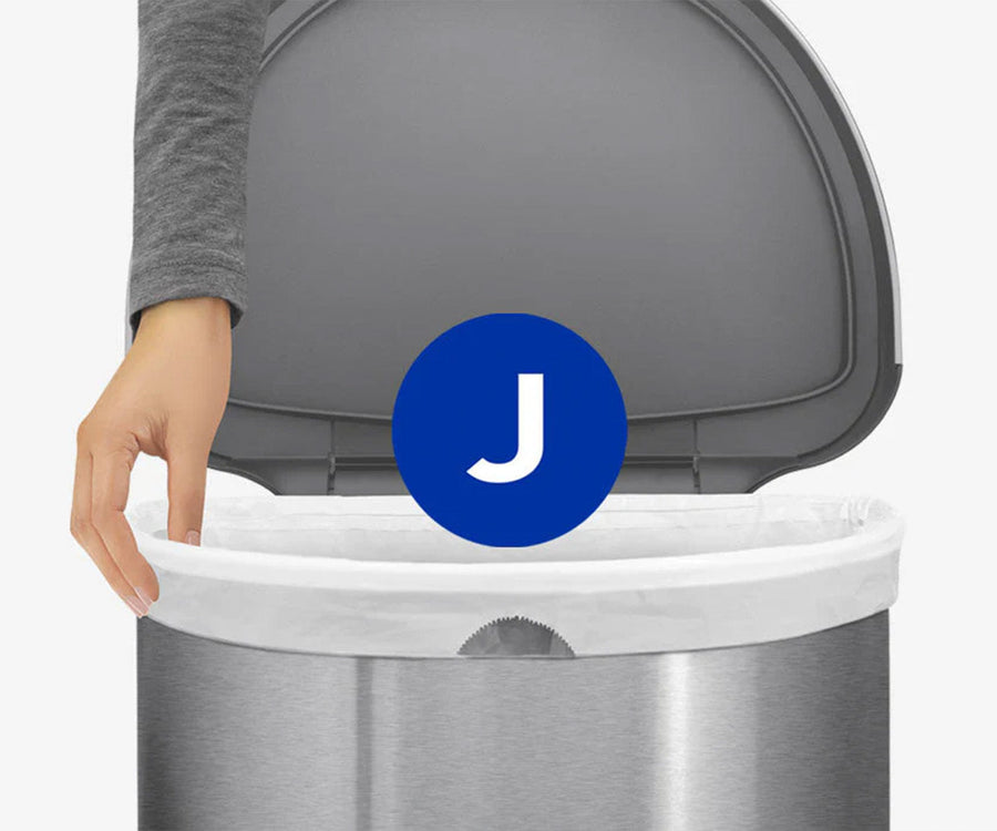 La tapa exterior se levanta para facilitar el acceso a la bolsa de basura. No es necesario retirar la parte superior del cubo ni balancear el cubo. Una vez terminada la tarea, el borde se cierra sobre la bolsa de basura y evita que quede a la vista.