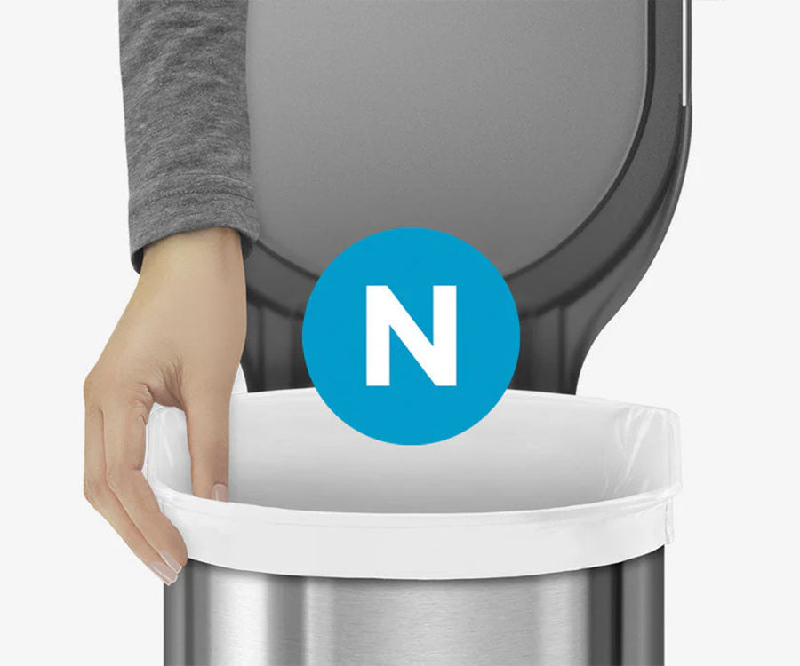 Nuestras cápsulas odorsorb se ponen de forma discreta bajo la tapa del cubo de basura de Simplehuman para eliminar malos olores.