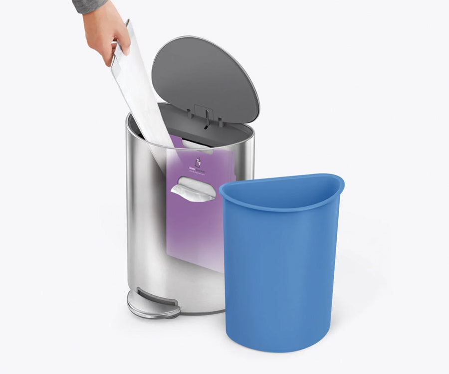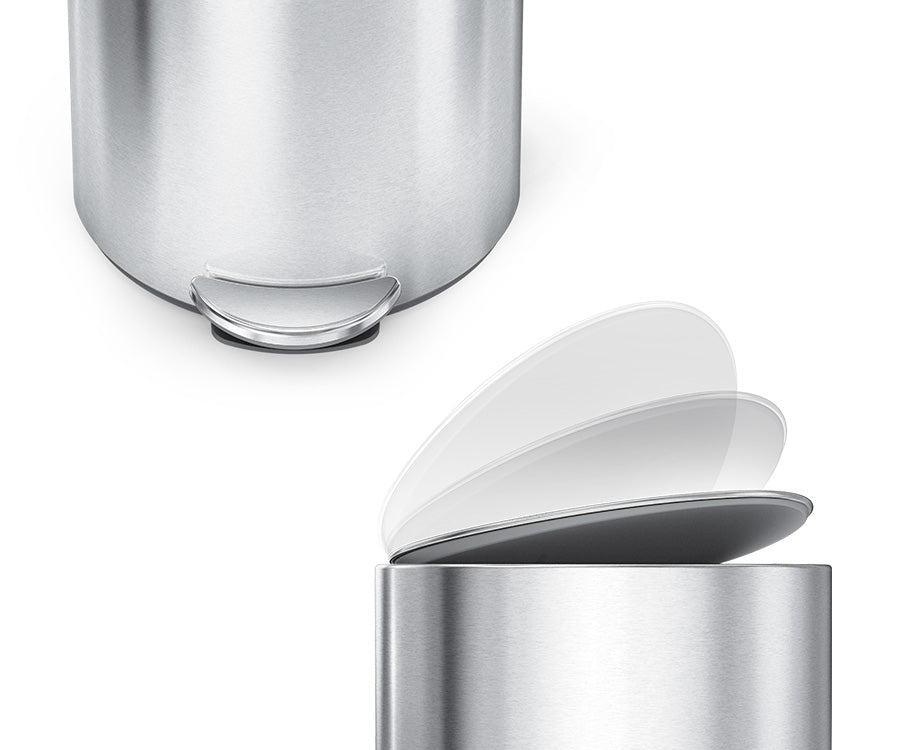 Fabricado con una estética de diseño, nuestro cubo de pedal semicircular de 6L es clásico y contemporáneo a la vez, con la capacidad perfecta para espacios pequeños.