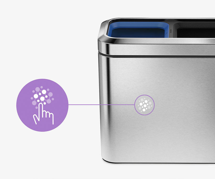 Nuestro revestimiento invisible de iones de plata resiste las huellas dactilares y la propagación de gérmenes sin atenuar el brillo y el lustre natural del acero (solo el modelo cepillado).