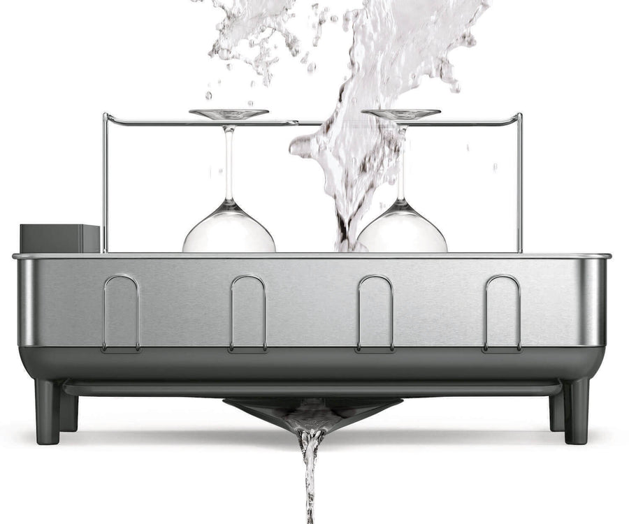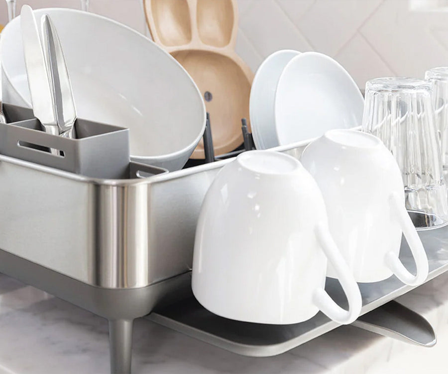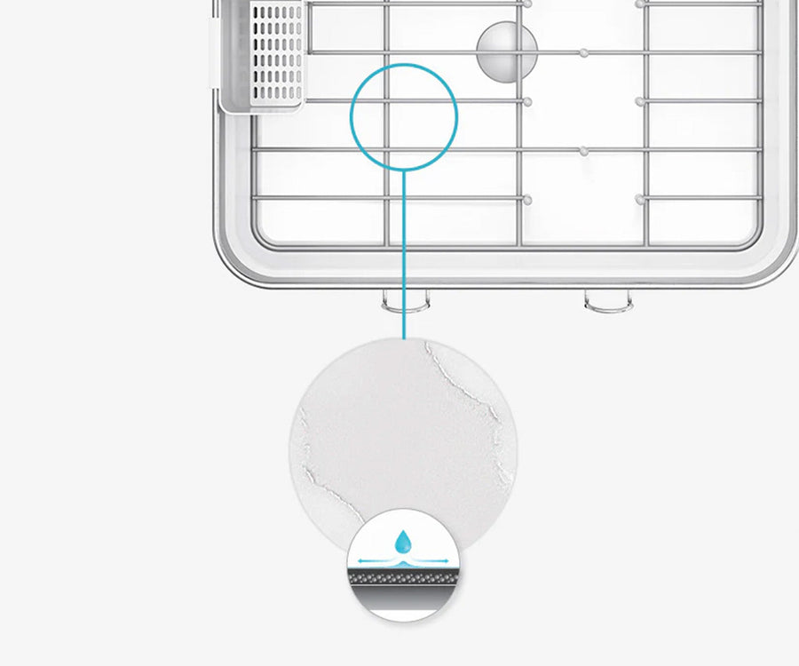 Nuestros escurreplatos drenan el agua de forma rápida y práctica, sin charcos, manchas de agua ni residuos. Incluso contamos con una canaleta giratoria para drenar el agua en el fregadero, independientemente de cómo coloques el escurreplatos.