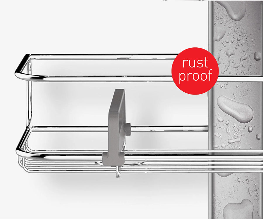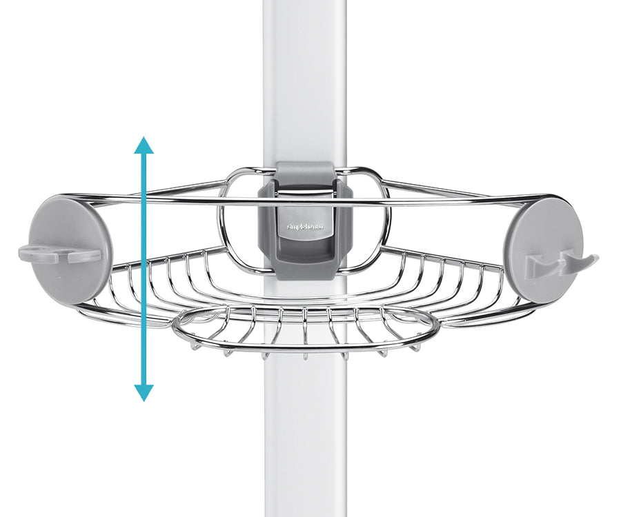 Las repisas con estructura de metal ajustables te permiten personalizar la estantería para la ducha. Deslízalas arriba y abajo para que haya espacio para las botellas más altas.