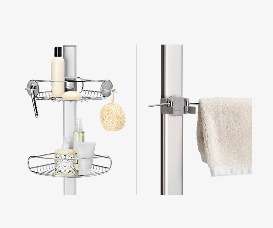 Los accesorios para la ducha más modernos y grandes son difíciles de adaptar a los distintos baños. Nuestras innovadoras opciones de almacenamiento están diseñadas especialmente para estos utensilios (las opciones varían en función del modelo).