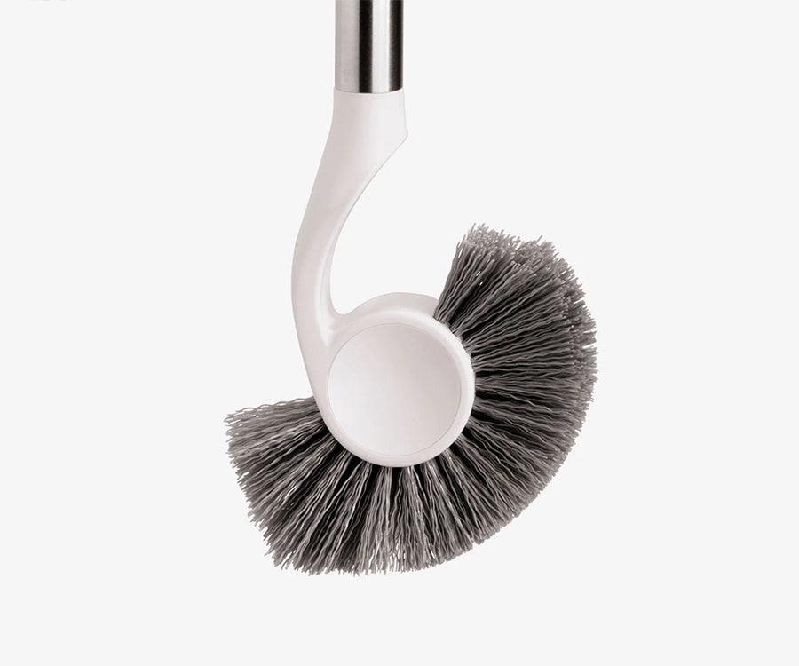 El diseño especial de la escobilla con forma de media luna permite llegar a zonas difíciles de limpiar alrededor de los bordes. Las rígidas cerdas exteriores son ideales para eliminar manchas difíciles.