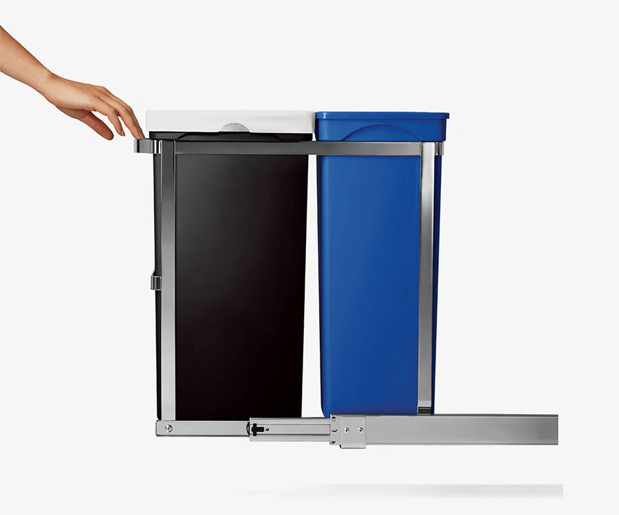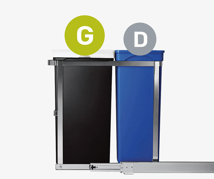 Nuestro cubo extraíble está diseñado para tener muchos años de vida. Este cubo tiene una resistente estructura de acero y se desliza por completo del armario sobre unos rieles con rodamientos de bolas de uso comercial para permitir un acceso rápido y sencillo.