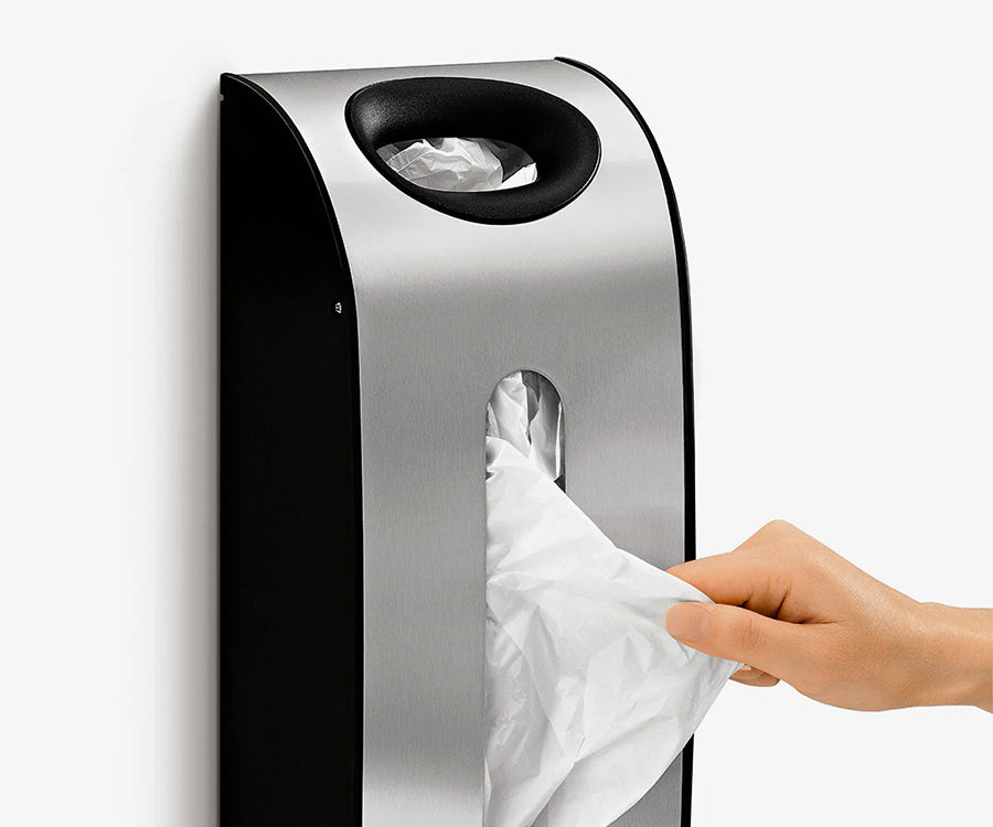Mete fácilmente hasta 30 bolsas de supermercado en la abertura superior para tenerlas organizadas y sin ocupar sitio. Cuando estén listas para reutilizarse, saca de una de la amplia ranura de dispensación situada en la parte frontal.